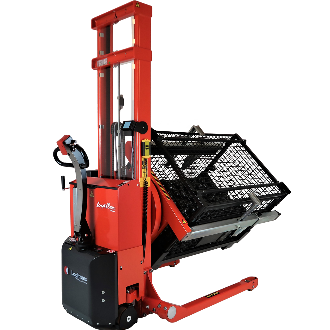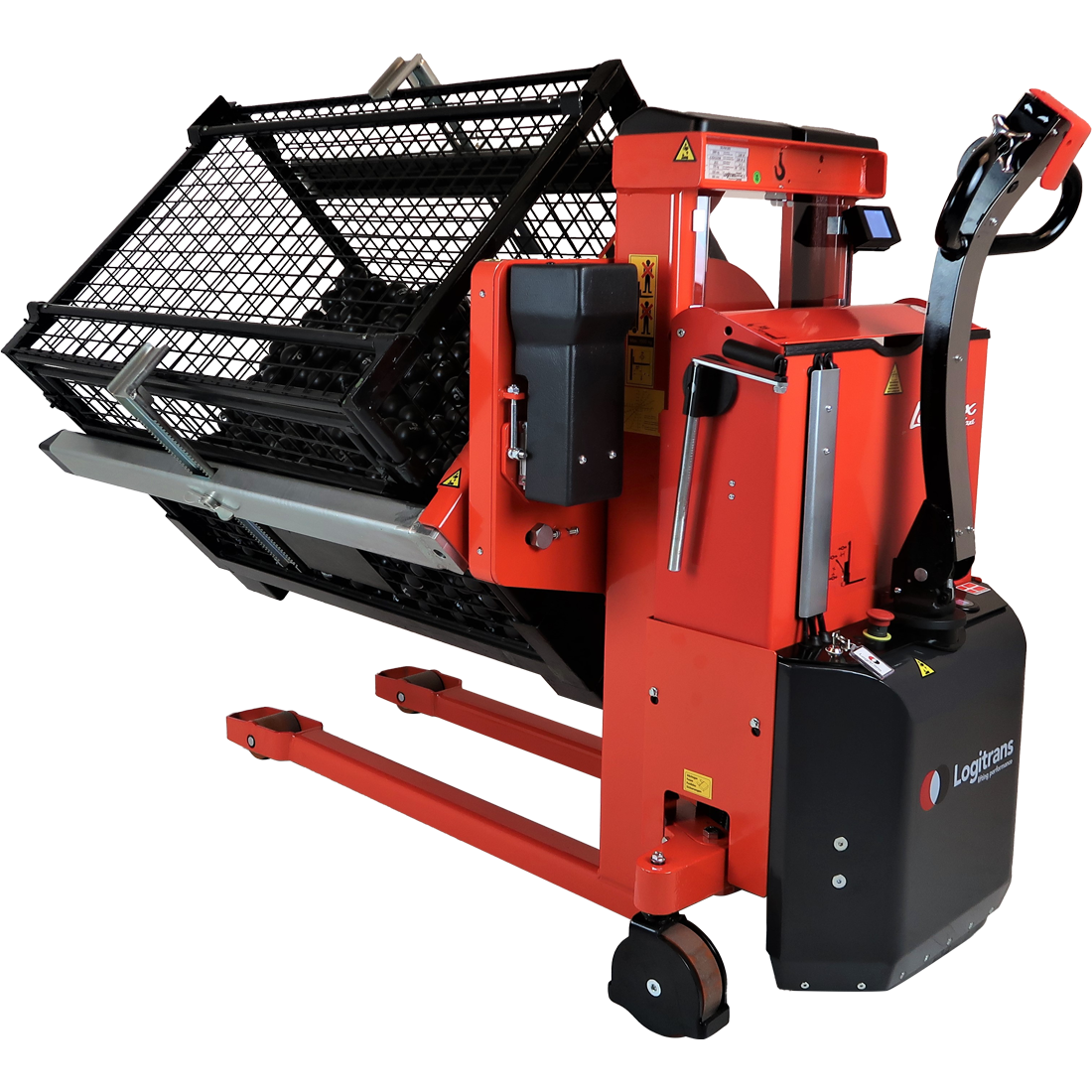 Rotator med justerbare boksholdere kan vippe kasser, så du kan nå indholdet uden at strække dig og belaste din ryg. Kassen kan også vendes med bunden i vejret, så den tømmes fuldstændigt.