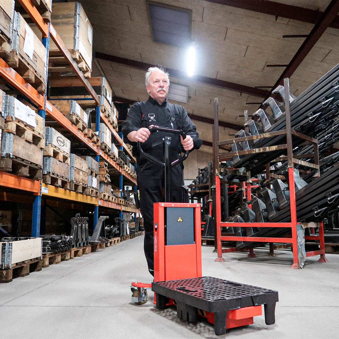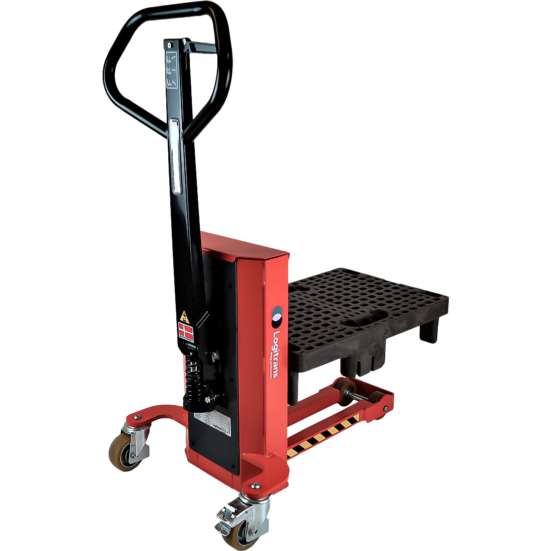 El elevador de cuartos de palé LogiQ 300, con una capacidad de 300 kg, es un socio indispensable a la hora de transportar cuartos de palé, p. ej., en supermercados, almacenes, aparcamientos y gasolineras. Los cuartos de palé se emplean a menudo como palés expositores, y el LogiQ 300 está diseñado para elevar cuartos de palés desde y hasta un europalé y moverlos hasta la ubicación prevista.