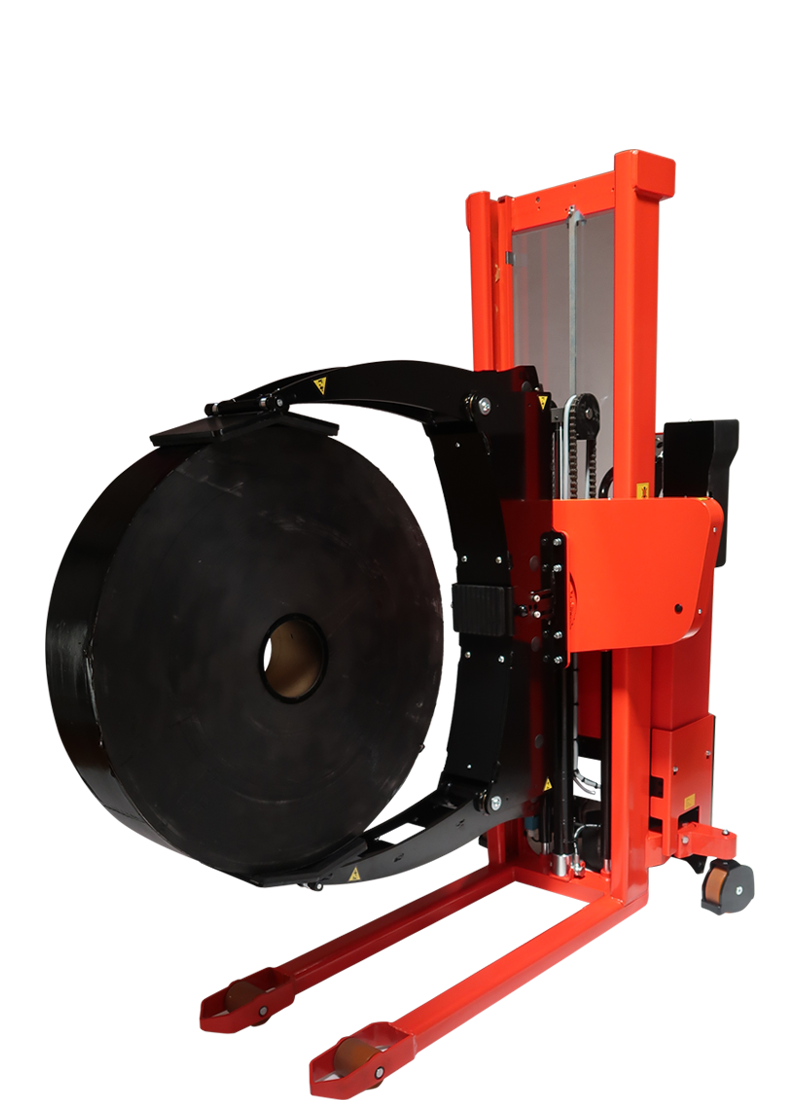 Transporting, lifting and rotating heavy reels from all pallet types - also closed ones