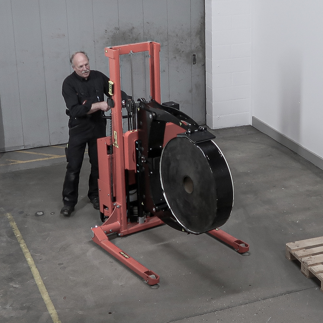 If you need to transport, lift or rotate heavy reels, e.g. placed on closed pallets, the fully powered reel rotator with straddle legs is the perfect choice! It can grab and place reels placed on all types of pallets.